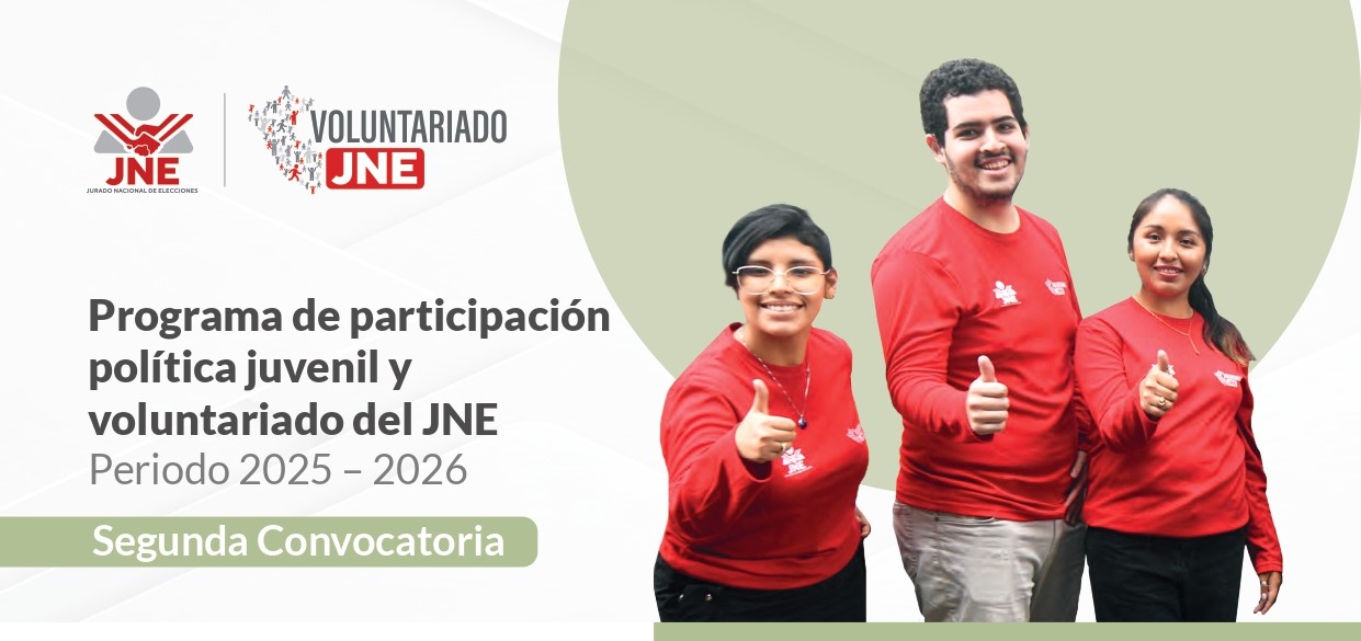 Segunda Convocatoria en el Programa de participación política juvenil y voluntariado del JNE Periodo 2025 - 2026 OBJETIVO: Promover la participación e inclusión de los jóvenes en el campo social y político…